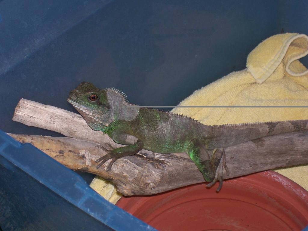 This is a water dragon that was kept in a very small cage without heat, food or water, in an attempt to keep her small. She is healthier now, but is still shy and displays abnormal behavior due to her inadequate conditions during her development. Lilly's forever home is at mynewturtle.