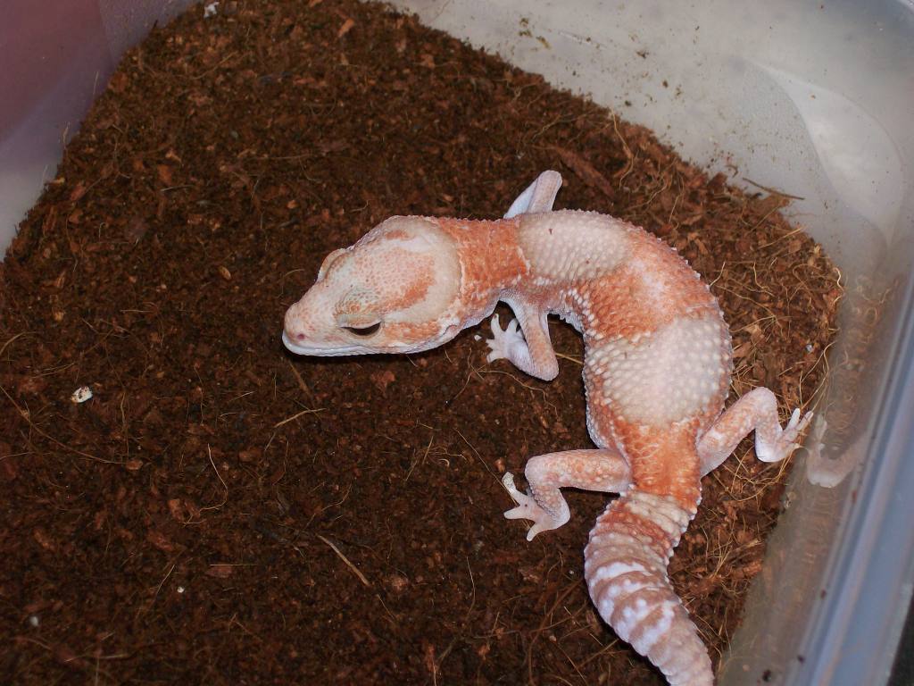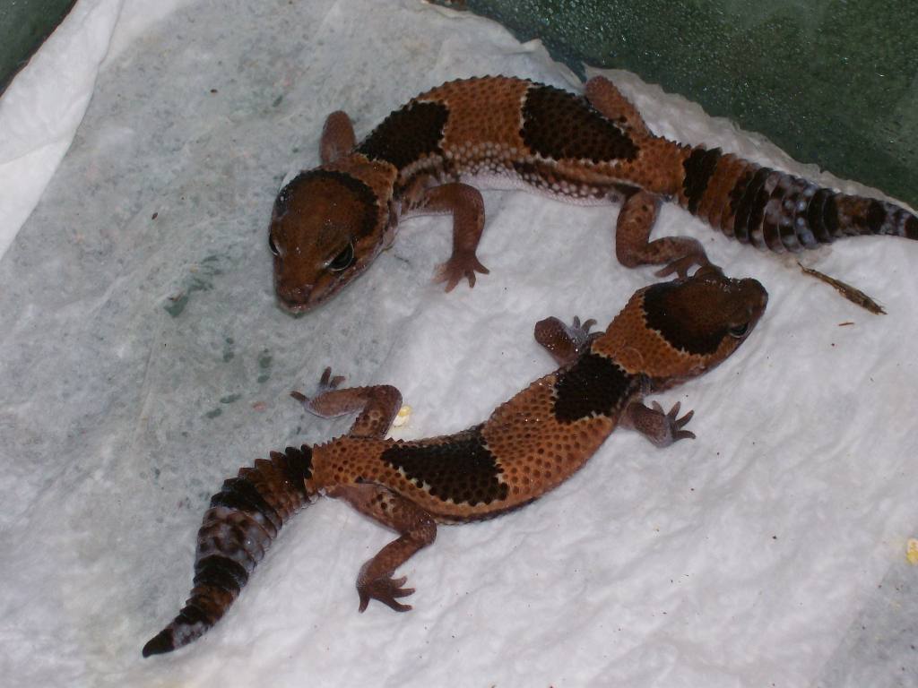 _____________________________________ This is a female, aberrant fat tail gecko (top in the picture). She has ribs that are slightly misshapen, making her body appear somewhat flat. She eats well, is active, and docile with people. She will make a great pet.