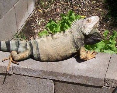 _____________________________________ This is an adult, male iguana named Iggy. His previous owner kept him indoors and thought he was very affectionate. When he stopped eating, the vet told her that Iggy had developed an enormous bladder stone.